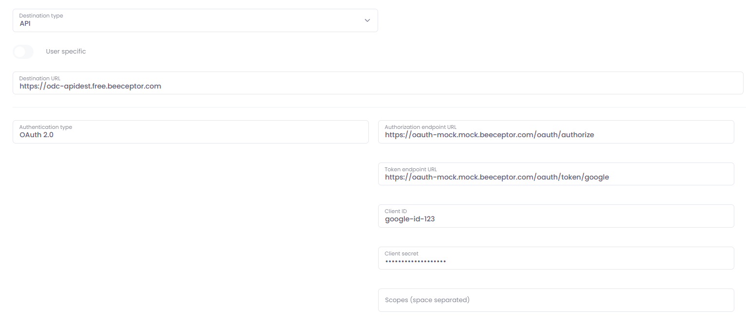 - OAuth 2.0 - API destination requires OAuth 2.0 authentication for delivery