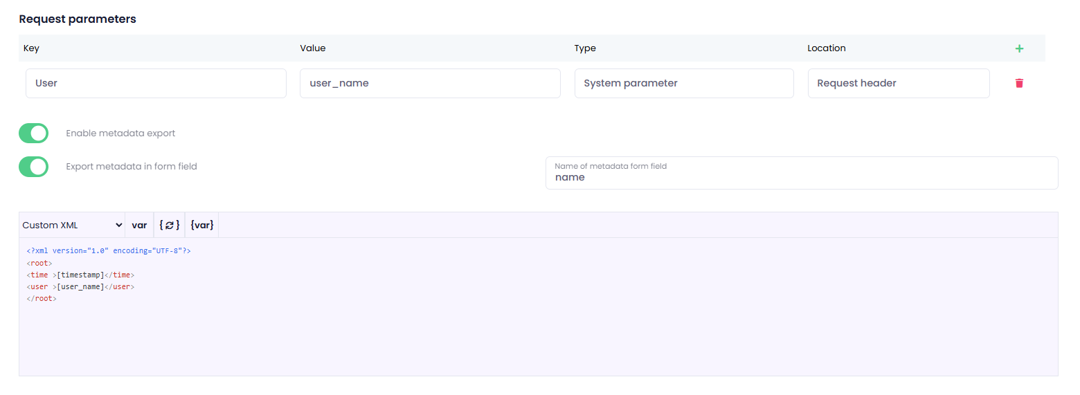- System parameter - can be any system parameter, like timestamp, user_name, user_email etc.