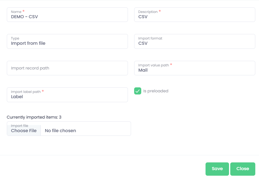 Import value path - CSV column name from header from which the final value will be read