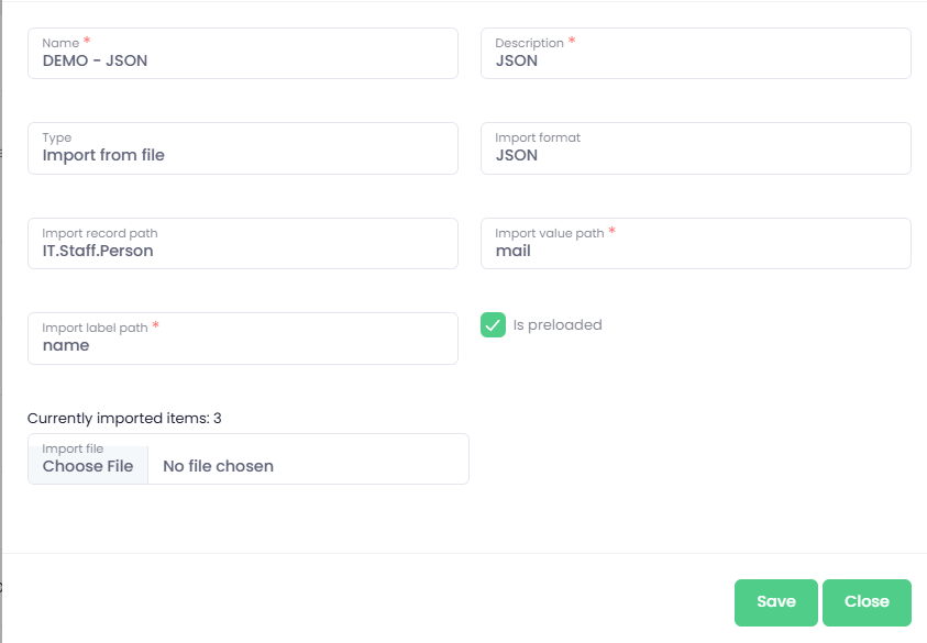 Import format - type of the file - JSON