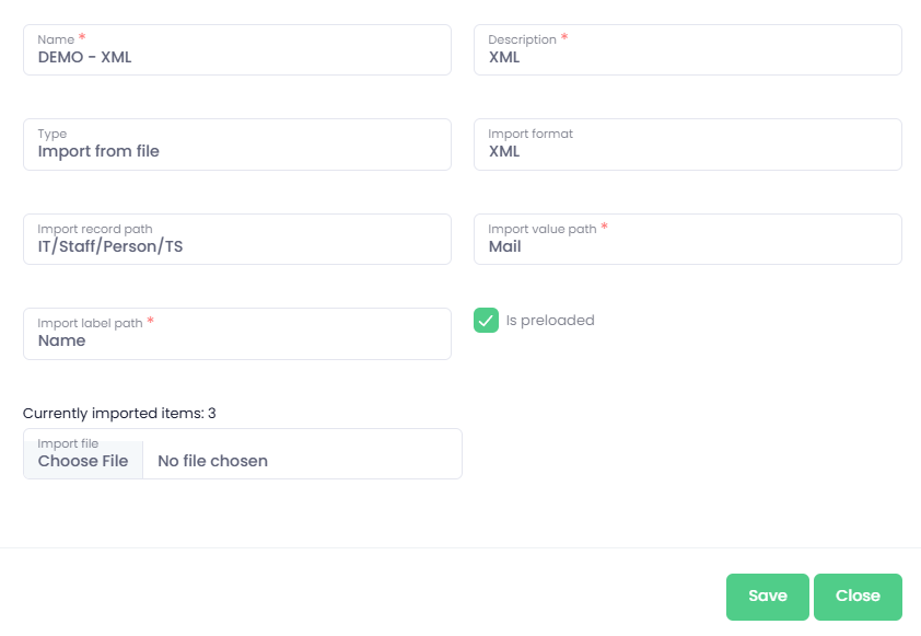Import value path - XML item name from which the final value will be read