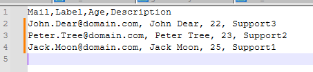 CSV structure for this example is as follows: