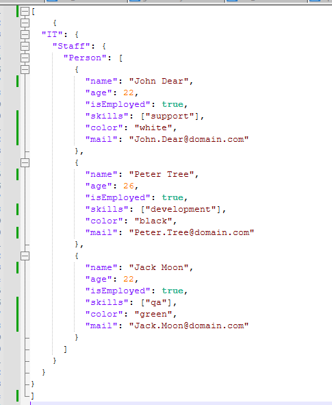 JSON structure for this example is as follows: