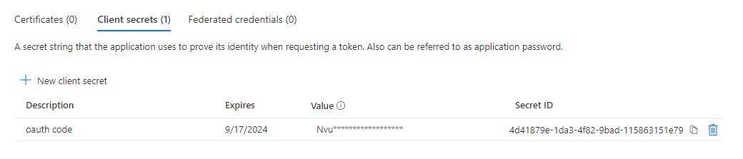 4. After creating the application go to certificates and secrets and create client secret