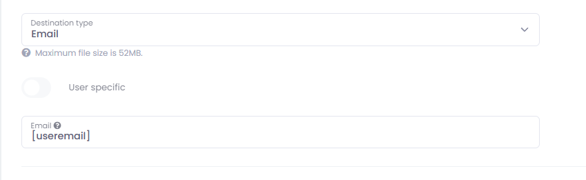 The User list parameter allows you to select user belonging to your company and the parameter returns the selected user's email address that can be used in destination.